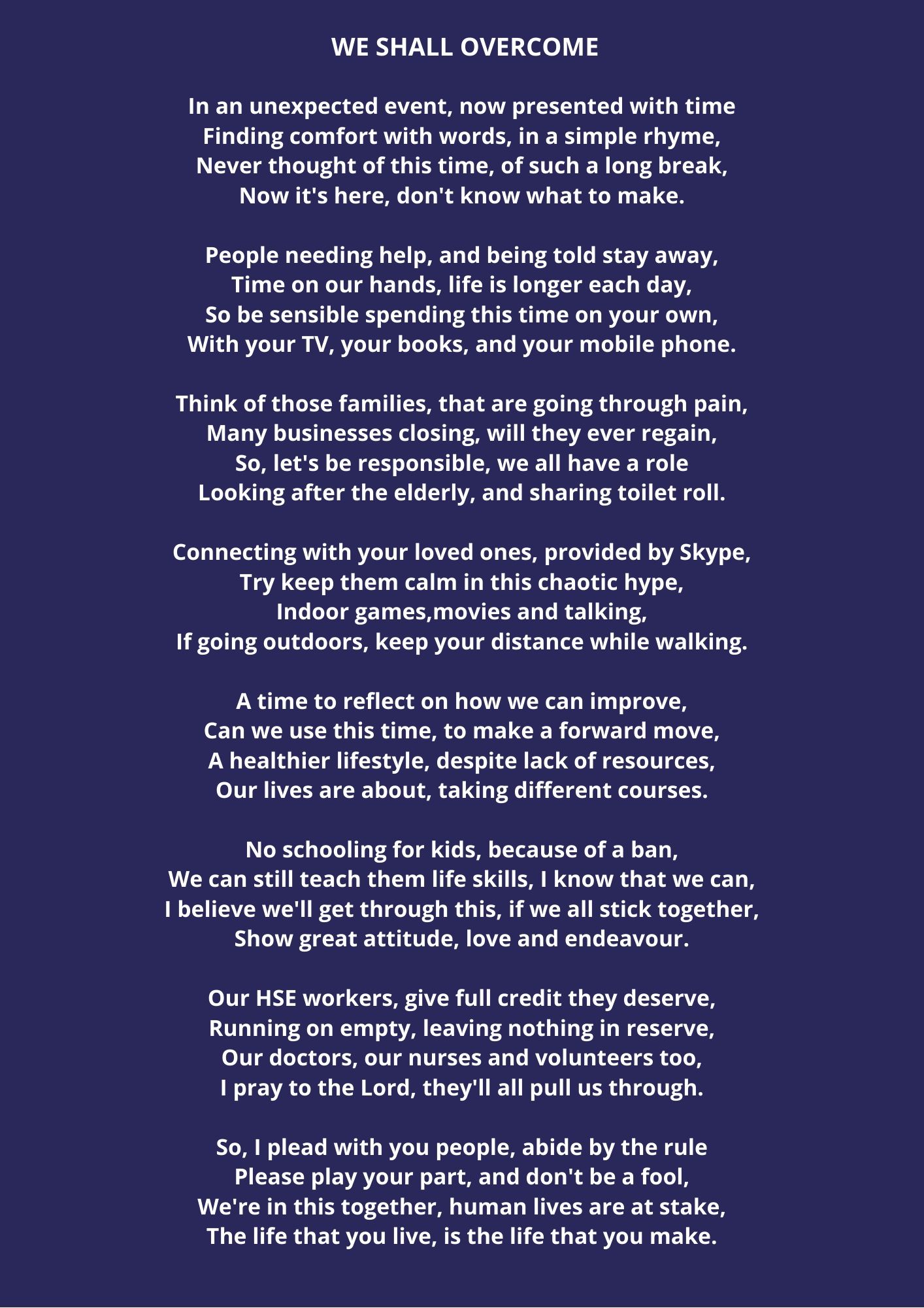Hotelwestport On Twitter Thank You To Our Resident Poet For This Uplifting Poem Share It If You Love It As Much As We Do Weshallovercome Https T Co Gcltstug8o Twitter